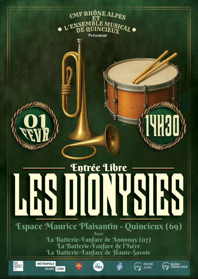 La CMF Rhône-Alpes et L’Ensemble Musical de Quincieux ont la joie de vous offrir les premières Dionysies !